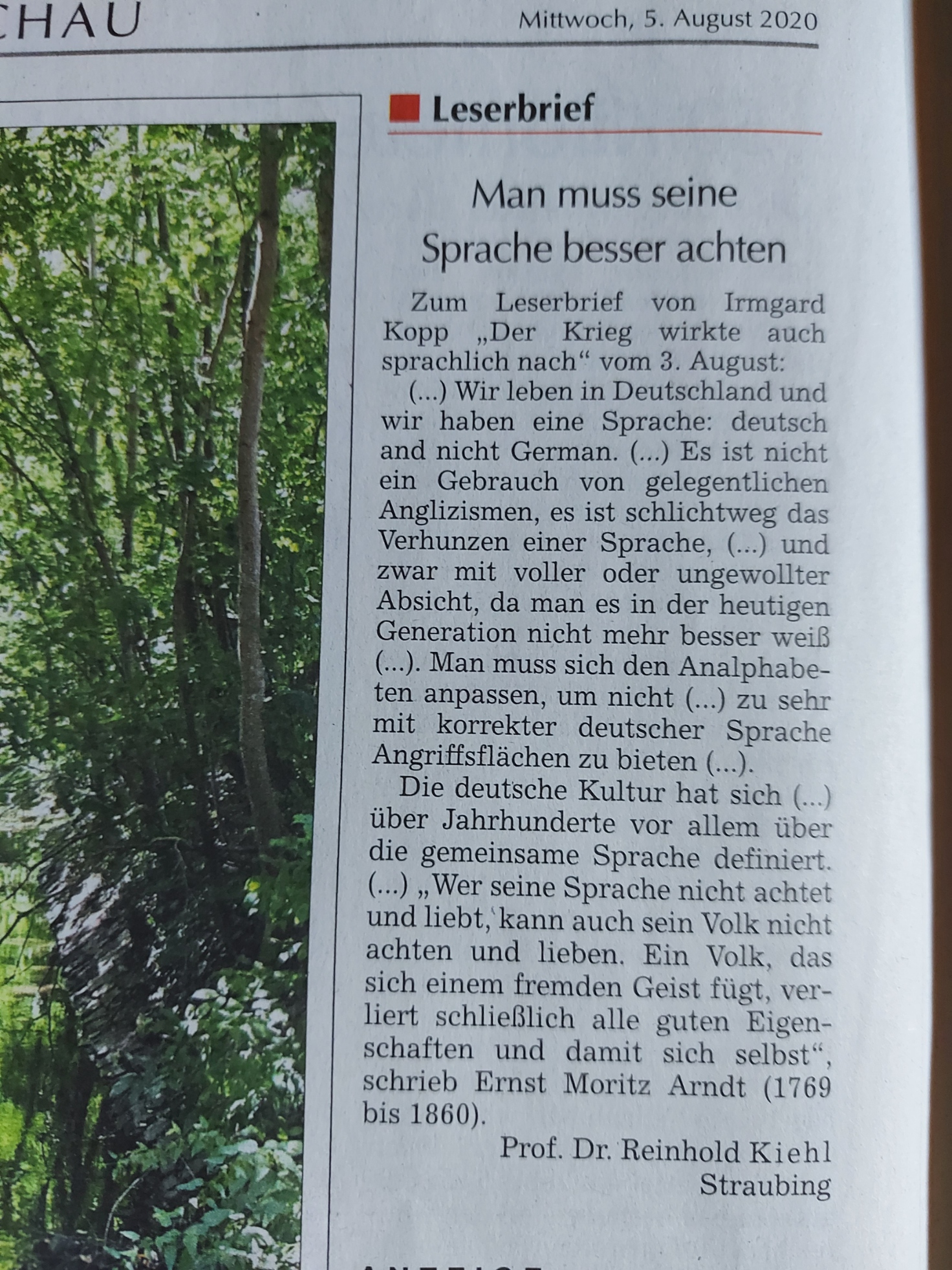hiermit bitte ich um Veröffentlichung meines Leserbriefes zu neuen "Gepflogenheiten" in Ihrer und anderer Medien Sprachgebrauch...