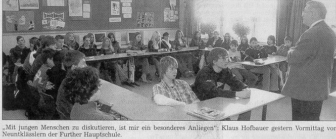 Deshalb sucht er auch das Gespräch mit den Menschen, wie der gestrige Besuch in der Further Hauptschule wieder einmal