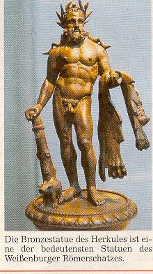 30 000 Kulturtouristen jährlichWeißenburg. (dpa) Eigentlich wollte der Weißenburger Hobbygärtner am 19.Oktober 1979 nur ein Spargelbeet umgraben. Ans Tageslicht kamen zu seinem großen Erstaunen aber Gefäße und Eimer, vollgepackt mit römischen Gegenständen und Tempelschätzen. Der Zufallsfund vor 25 Jahren machte die mittelfränkische Stadt Weißenburg endgültig zu einer Römerstadt, nachdem dort bereits zwei Jahre zuvor Römische Thermen ausgegraben worden waren. Der Römerschatz wird in einem 1983 neu eröffneten Römermuseum der 18000-Einwohner-Stadt gezeigt.