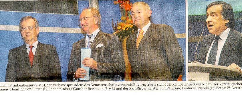 Volksbanken und Raiffeisenbanken am Montag in Straubing. Innenminister Günther Beckstein, Siemens-Chef