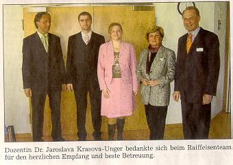Auf Wunsch der Besuchergruppe gab Erhard Walter noch einen Einblick in die Zusammenhänge der Weltwirtschaft, das Wirtschaftswachstum, die Arbeitszeit, die Verteuerung der Rohstoffe, die Konjunktur im Euroland verglichen mit Deutschland, die Entwicklung der Verbraucherpreise und der Zinsen. Auch auf das Wachstum in der Tschechischen Republik ging der Raiffeisenbank-Chef ein. Gerne hörten die Gäste die Aussage, dass sich Tschechien mit dem Wachstum auf einem guten Weg befinde. Die Informationen rundete Prokurist Josef Pongratz mit den Möglichkeiten der Vermögensbildung in Geld sowie in Sach- und Substanzprodukten ab.