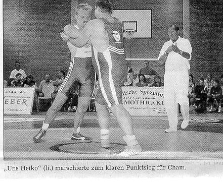 Eine gute Figur gab Chams Nachwuchsringer Karl Pfeilschifter bis 60 kg dann gegen Raji sert ab, aber an einer 0:8-Punktniederlage gegen den Freistilspezialisten gab es nichts zu deuteln.Bis 96 kg holte dann einzig Oliver Tiedemann für den ASV Cham vier Punkte, da Stefan Niklas schon vorher die Aufgabe "vereinbart" hatte. Bis 66 kg "fieselte" Ingo Metzger den couragiert ringenden Chamer Mario Schmid dann mit 0:8 technischen Punkten ab - die Kelheimer "Oldies" hatten kein Problem, konditionell über die volle Kampfzeit zu gehen.