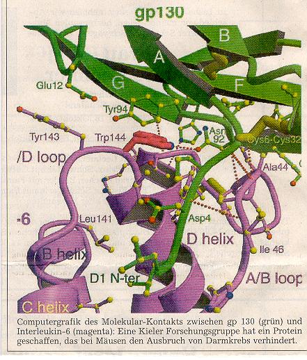 Kiel. (dpa) Ein an der Universität Kiel entwickeltes Protein kann bei Mäusen Darmkrebs verhindern. Das Eiweiß unterdrücke das Krebs auslösende Signal des Botenstoffs Interleukin-6 (IL-6), teilte die Hochschule am Dienstag mit. Dies habe eine Forschergruppe um den Kieler Biochemiker Prof. Stefan Rose-John und Prof. Markus F. Neurath vom Universitätsklinikum Mainz im Tiermodell nachgewiesen. Die von Rose-John mitgegründete Kieler Firma Conaris will den neuen Stoff binnen fünf bis acht Jahren zu einem anwendungsfähigen Medikament entwickeln.