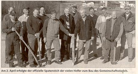 Viele Stunden ihrer Freizeit haben die Helfer geopfert, um dieses stolze "Bauwerk" entstehen zu lassen. Zwar handelt es sich "nur" um einen Stadel, den wahren Wert stellt jedoch die Tatsache dar, wie dieser entstanden ist. Nachdem der ursprüngliche Plan eines Anbaus für das Feuerwehr-Gerätehaus aus finanziellen Gründen gescheitert war, setzte man sich zusammen, um nach einer Lösung zu suchen. Grund dafür war, dass man für die immer mehr werdenden Vereinsutensilien keinen Platz hatte, um sie ordnungsgemäß zu lagern. In mehreren Gesprächen der Vereinsvorstände und der Stadt Furth wurde im Herbst der Beschluss zum Bau eines Gemeinschaftsstadels gefasst. Ohne zu zögern erklärten sich die Freiwillige Feuerwehr, der Eisstockverein, der Schützenverein "Gut-Ziel", der Obst- und Gartenbauverein und die Jagdgenossenschaft Lixenried bereit, sich sowohl finanziell als auch mit tatkräftiger Hilfe am Bau zu beteiligen.