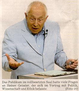 Der rapide - "transrapide" - Fortschritt, wie Geissler sagte, verlange auch in der Welt von Morgen lebenslanges Lernen und Mobilität. "Aber was soll das für eine Welt sein?", fragte der promovierte Philosoph und Rechtswissenschaftler. "Eine, die ein menschliches Gesicht hat, oder eine, die über Leichen geht?" Auch in der globalen Welt habe die Nächstenliebe eine übergeordnete Bedeutung, mahnte Geissler an.
