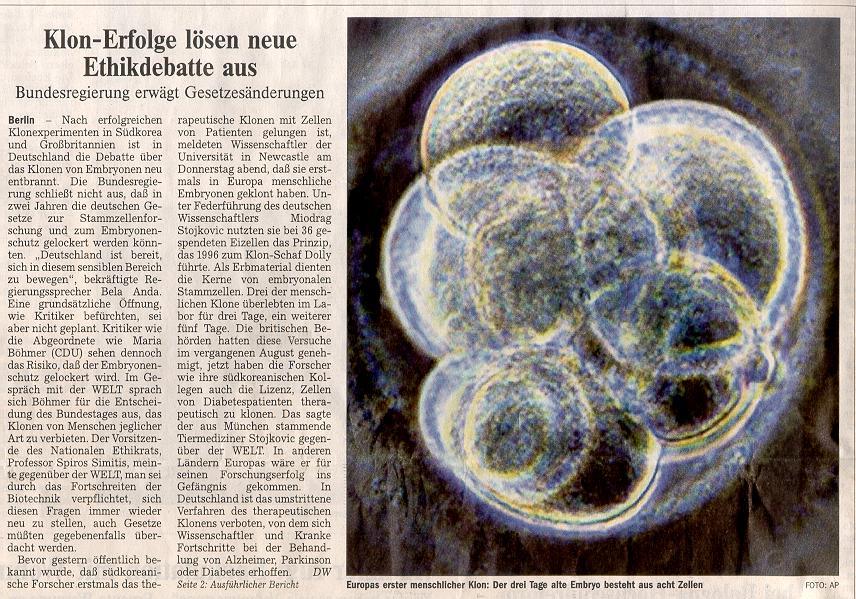 Mir ist die neuerliche Diskussion um die "Krebszellen" einiger Charlatane = Koreaner, Engländer und