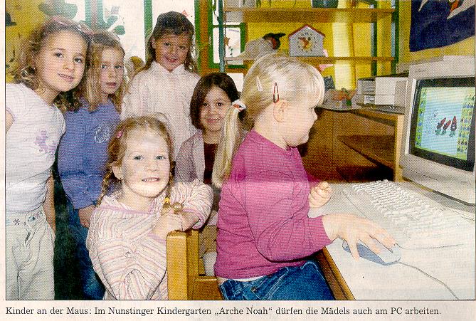 Cham. Von wegen Mädels haben Scheu vor der Technik: Der Computer ist umlagert von lachenden Vier- und Fünfjährigen, die ihrer Freundin über die Schulter blicken. Noch vor ein paar Jahren wäre ein PC in einem Kindergarten unvorstellbar gewesen, jetzt gehört er dazu wie Puppenecke und Bausteine. Im Kindergarten "Arche Noah" in Cham-Nunsting arbeitet man seit September nach dem neuen Bildungs- und Erziehungsplan. Mit guten Erfahrungen, wie Kindergartenleiterin Elisabeth Stelzl versichert. Mathematische Bildung, naturwissenschaftliche und technische Förderung, sprachliche Erziehung - all das gehört zum Kindergartenalltag. Was aber nicht bedeutet, dass die Fünfjährigen jetzt Lesen und Rechnen lernen müssen. Mit speziellen Angeboten wird aber gezielt die Neugier und der Forscherdrang der Kinder wird geweckt und gefördert.
