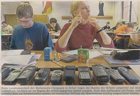 Ein allgemeines Handyverbot lehnte das Kabinett demnach ab. Gegen solche Überlegungen hatte es im Vorfeld heftigen Widerstand gegeben. Der Chef der Landtags-CSU, Joachim Herrmann, wies eine entsprechende Forderung von CSU-Generalsekretär Markus Söder zurück. "Ich halte von pauschal verordneten Verboten nicht allzu viel."Schon jetzt sei vorgeschrieben, dass Handys während des Unterrichts abgeschaltet sein müssten. Ob man den Schülern auch verbieten könne, die Geräte überhaupt mitzunehmen, sei äußerst fraglich, sägte Herrmann. Viele Eltern legten Wert darauf, dass ihre Kinder im Notfall Hilfe rufen oder sich mit ihnen verständigen könnten.