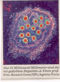 Noch vor einigen Jahren sprach man lapidar von einer "Non-A-Non-B-Hepatitis", wenn eine entzündete Leber nicht so recht ins Bild passen wollte und Hepatitis-Viren der Typen A und B nicht die Ursache waren. Inzwischen aber kennen Ärzte sechs verschiedene Typen von Hepatitis-Viren. Das Alphabet reicht von A bis G, F wurde fälschlicherweise vergeben und musste zurückgezogen werden. All diese Viren lösen eine Leberentzündung aus und können Leberversagen hervorrufen. Miteinander verwandt sind sie jedoch nicht.