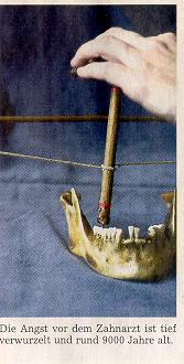 Paris/London. (dpa) Bereits vor 9000 Jahren setzten Zahnärzte im heutigen Pakistan den Bohrer an. Das gehe aus Funden im Gräberfeld von Mehrgarh in Belutschistan hervor, berichtet ein internationales Forscherteam in der britischen Fachzeitschrift "Nature" (Bd. 440, S. 755) vom Donnerstag. Zuvor waren nur Fälle nachgewiesen worden, die jünger als 6000 Jahre sind.