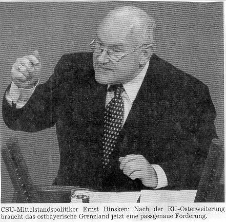 Hinsken:Natürlich bringt die EU-Osterweiterung für Deutschland viele Chancen mit sich, die es entschlossen zu nutzen gilt. Gleichzeitig dürfen wir aber nicht die Augen davor verschließen, dass insbesondere das Grenzland vor enormen Herausforderungen steht. Insbesondere das bayerische Grenzland zu Tschechien muss stärker als viele andere Regionen die Lasten der EU-Erweiterung stemmen.