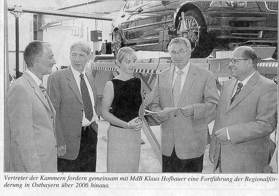 Regensburg/Cham. Mit einem gemeinsam erstellten Forderungskatalog rufen die Handwerkskammer Niederbayern/0berpfalz, die Industrie- und Handelskammer für Oberfranken Bayreuth und der Chamer Bundestagsabgeordnete Klaus Hofbauer die Bundesregierung auf, sich für eine Fortführung der Regionalförderung in Ostbayern über 2006 hinaus einzusetzen. "Die Kombination aus niedrigen Steuersätzen und Kosten sowie hoher Förderung in unmittelbarer Nachbarschaft zu unseren Grenzregionen lässt nicht viele Möglichkeiten für einen fairen Wettbewerb offen. Deshalb muss die Wirtschaft in Ostbayern - und dabei vor allem kleinere Unternehmen - in die Lage versetzt werden, mit den Standortvorteilen der tschechischen Nachbarn einigermaßen konkurrieren zu können. Hierzu hat die Bundesregierung Möglichkeiten erhalten. Sie muss daraus nun aber auch konkrete Förderansätze entwickeln", so die Wirtschaftsvertreter.