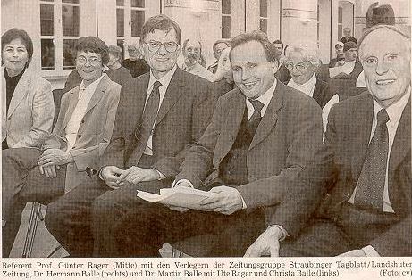 Prof. Rager hatte eingangs gesagt, dass er es als sehr schwierig empfunden habe, die beiden Themen in einem Vortrag zu vereinen. Doch wie Dr. Martin Balle, Verleger der Zeitungsgruppe Straubinger Tagblatt/ Landshuter Zeitung, sagte, ist der Philosoph und Mediziner allein wegen seiner Berufswahl für derartige Grenzüberschreitungen prädestiniert. Die Vortragsreihe wird in zwei Jahren fortgesetzt. Katrin Filler