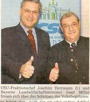 Agrarminister Josef Miller (CSU) bot den Befürwortern des Volksbegehrens einen "konstruktiven Dialog" an. CSU-Fraktionschef Joachim Herrmann sagte, es sei durchaus denkbar, dass bei den anstehenden Gesetzesberatungen noch der ein oder andere Artikel geändert werde.