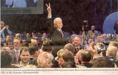 Ministerpräsident fordert in seiner politischen Aschermittwochsrede in Passau einen radikalen Kurswechsel in der Wirtschafts- und Finanzpolitik - Gemeinsam gegen Extremismus vorgehen - Schröder gegen "Ritual der Beschimpfung