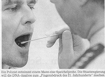 Deutsche laut Umfage für genetischen Fingerabdruck ??? --- Siehe dazu unten ( bei DNA-Analyse: Schily gegen Bayern-SPD) den Kommentar von R.Kiehl