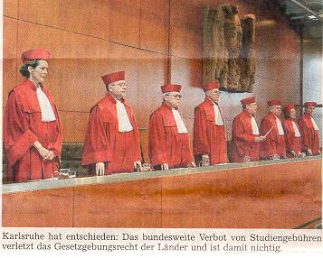 Karlsruhe. (dpa/AP) Das Verfassungsgericht hat den Weg für die Einführung von Studiengebühren