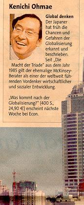 "Was kommt nach der Globalisierung?", fragt Vordenker Kenichi Ohmae. Die FTD druckt