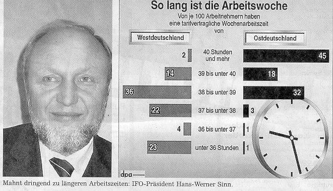 Sinn: Ja, aber das Ziel ließe sich einfacher erreichen, wenn wir die Arbeitszeit ein bißchen verlängern würden. Wenn wir zehn Prozent länger arbeiten würden, also von 38 auf 42 Stunden pro Woche gingen, entspräche dies etwa 20 bis 30 Feiertagen. Die Streichung eines Feiertages ist ein schmerzlicher Beitrag, der nicht viel bringt. Die Verlängerung der Arbeitszeit wird wahrscheinlich auf viel weniger Widerstand stoßen und hat zudem einen viel größeren Effekt.