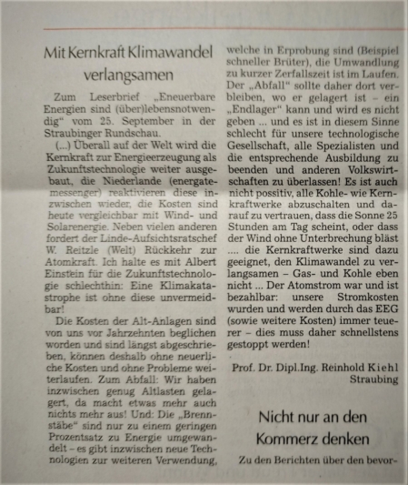 | Betreff: | Fwd: Leserbrief zu "Eneuerbare Energien sind (über)lebensnotwendig", 25.Sept., Str.Rundschau, Scharzer-Peter-Spiel um Atommüll, Debatte um Endlager spitzt sich zu, 25.Sept., Str.Tagblatt... |