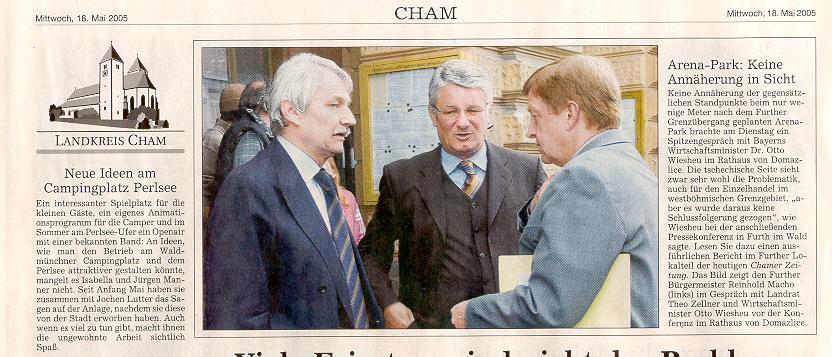 Bayern kann Arena-Park nicht verhindern/Kommunen fordern "Donau-Moldau-Bahn"/KommR.Kiehl 8.April 2005