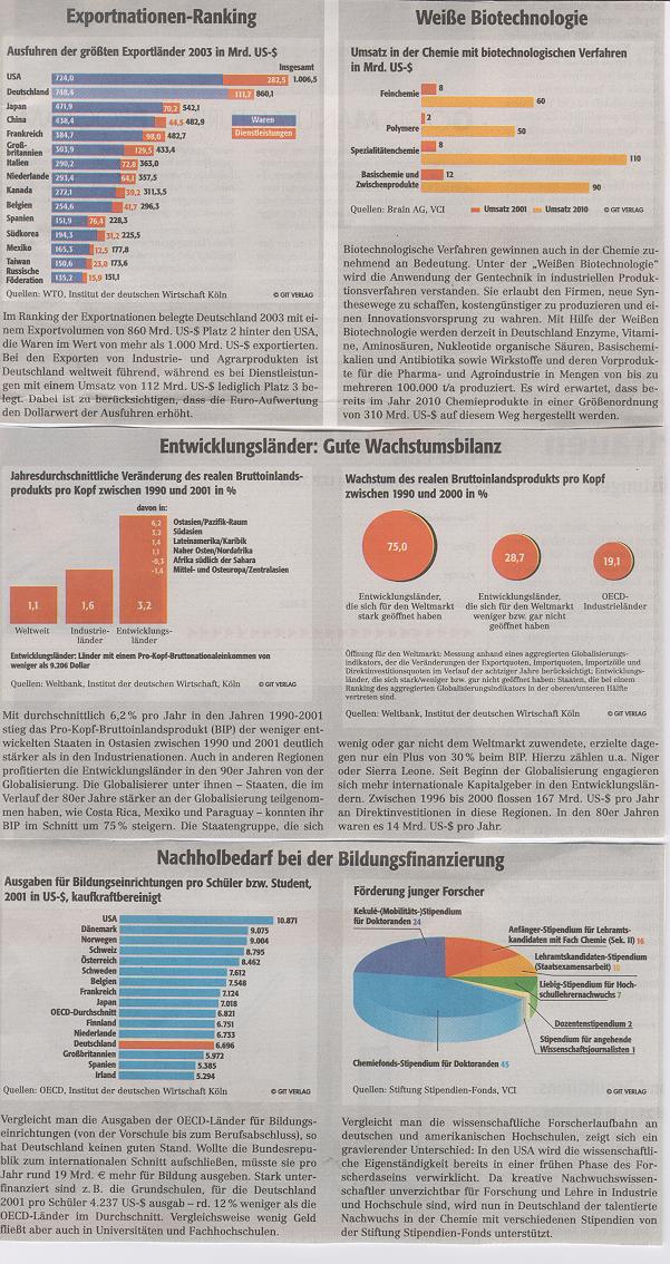 Exportnationen-Ranking/Weiße Biotechnologie/Entwicklungsländer: Gute Wachstumsbilanz/ Nachholbedarf bei der Bildungsfinanzierung? CHEManager 21/2004