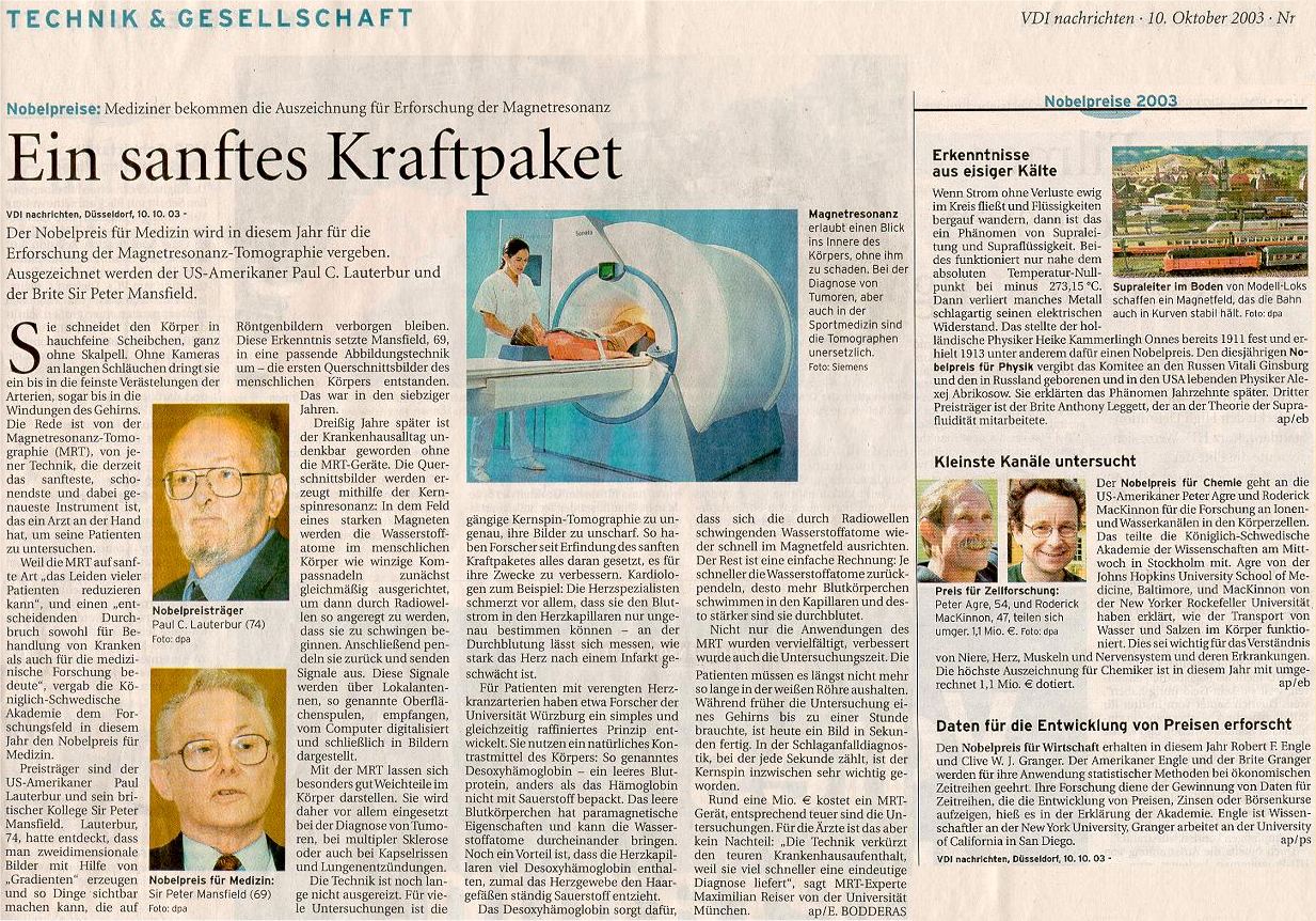 "Industrie hält freie Erfinder klein" VDI,29.Aug.2003 - "Branchenriesen bremsen Kleinere aus" VDI,05.Sept.2003