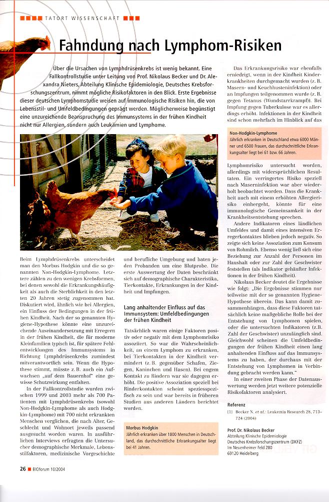 Parkinson: Warum sterben die Hirnzellen ab? BIOforum 10/2004 Fandung nach Lymphom-Risiken BIOforum 10/2004