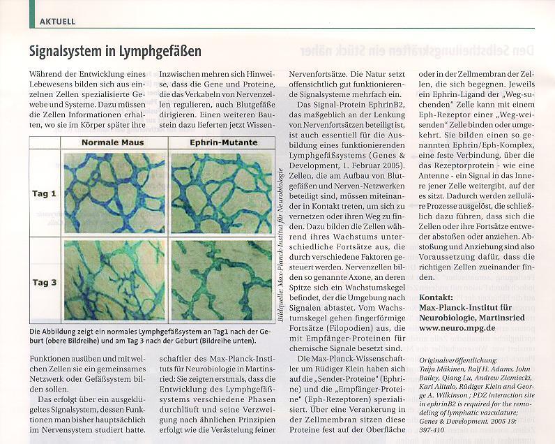 Schutzmechanismen gegen Hirntumore März 2005 Signalsystem in Lymphgefäßen BioTec3-4/2005