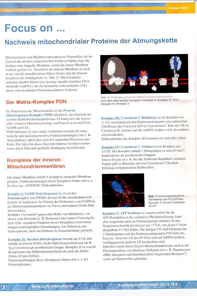 "A new way to identify mitochondrial phosphoproteins" zum Buch, den Artikeln von Reinhold Kiehl: Literaturliste und "Materials", zu den