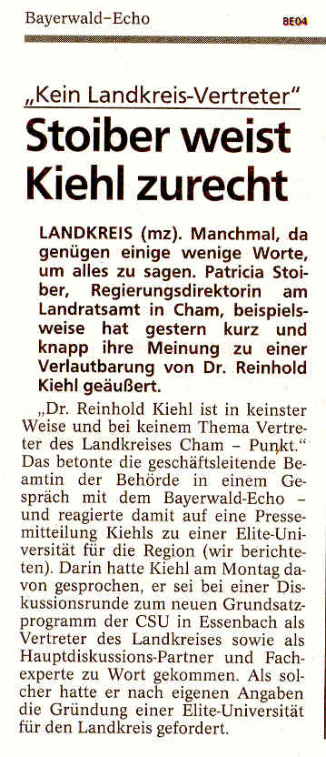 "Kompetenz und Wissen nicht gefragt" LB Chamer Zeitung, 15.Febr07