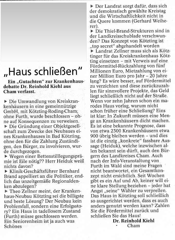 Bekannte Kandidaten und neue Gesichter/Notiz zum Schluß,Kiehl mit eigener Liste? Chamer Z.,28.Nov07